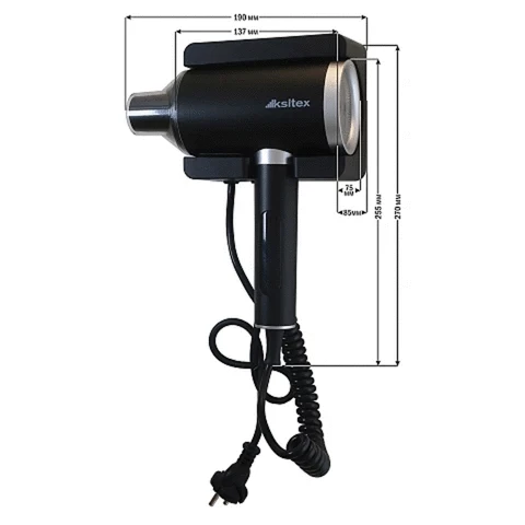 Фен для волос настенный KSITEX F-2000B JET, 2000 Вт, пластик, 2 скорости, 2 температурных режима, черный