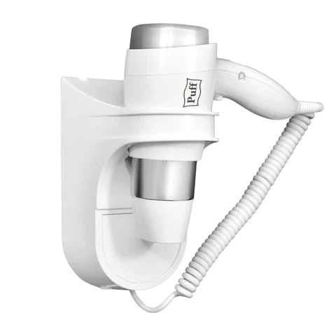 Фен для волос настенный PUFF-1600, 1600 Вт, пластик, 2 скорости, белый