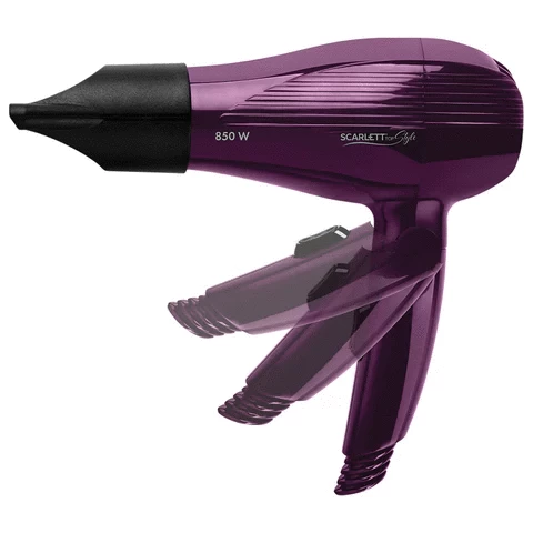 Фен SCARLETT SC-HD70T24, мощность 850 Вт, 2 скорости, 1 температурный режим, складная ручка, фиолетовый