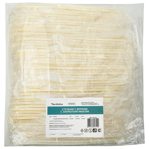 Одноразовые тапочки ЧИСТОВЬЕ с закрытым мысом белого цвета. Используются в соляриях, педикюрных кабинетах, косметологических салонах.